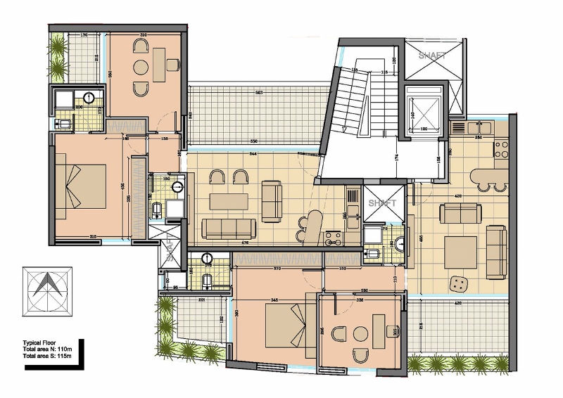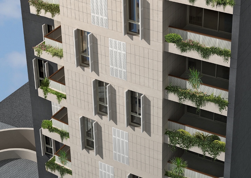 • 10 étages répartis comme suit: 8 étages de 2 appartements de 110 m² environ